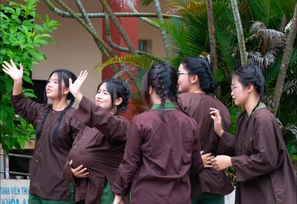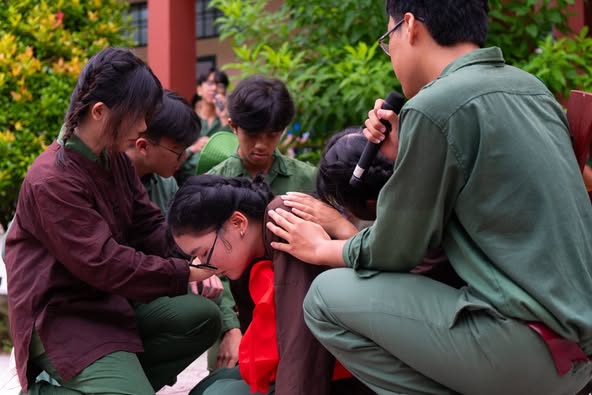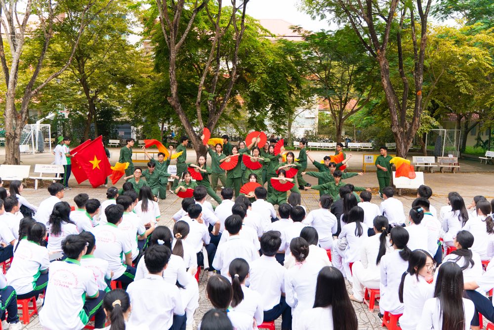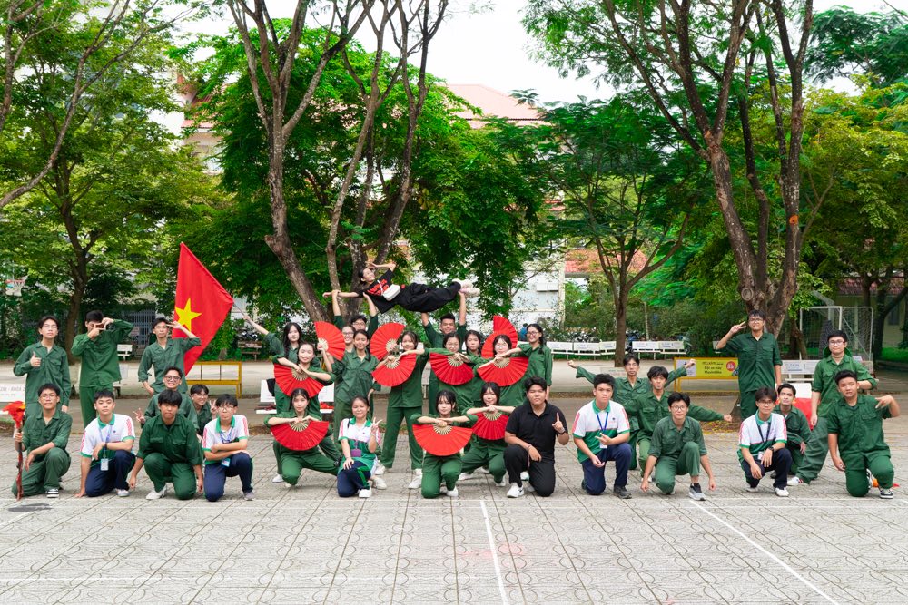 However, the performance did not end in sorrow. To fully convey the spirit of resilience, the poignant play was seamlessly paired with an energetic mashup dance performance. Set to the powerful melodies of “Tiếng đàn Ta Lư” and “Người Việt” (“The Sound of the T’rưng” and “The Vietnamese”), A1K12 performed vigorous, decisive movements that radiated determination. This transition brought forth a surge of vitality, embodying the indomitable spirit and steadfast will of the Vietnamese soldiers during the wars of resistance. The combination of tragedy and strength vividly portrayed the heroic essence of those who fought for their homeland.