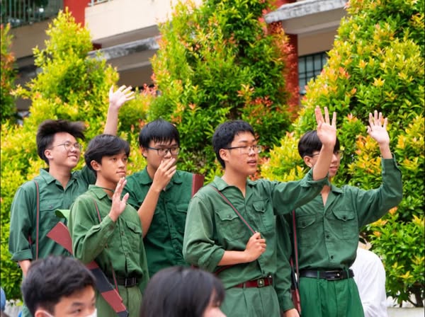 Under the solemn and familiar shadow of the national flag, Class A1K12 came together to create an emotionally charged performance, marking their final flag duty. The event was not merely a summary of their school days but also a heartfelt expression of gratitude conveyed through the art of performance.