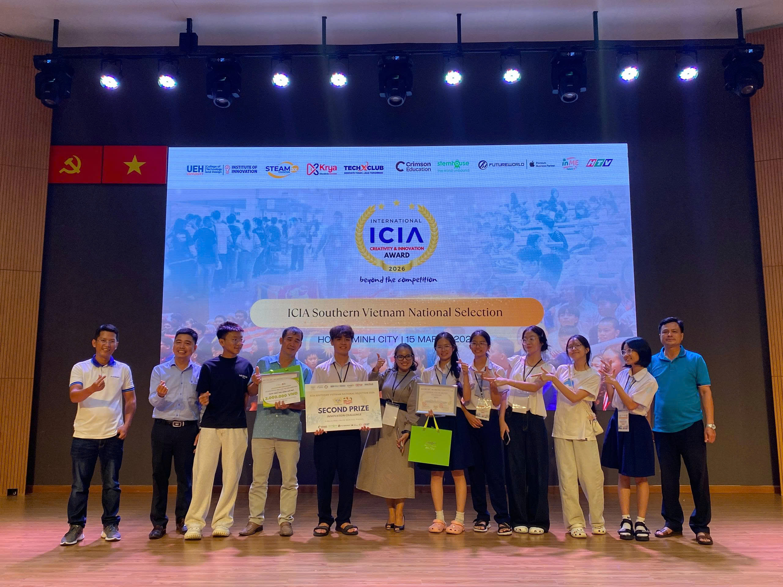 Great news at the start of the week has arrived at Can Tho University Elite High School. The school proudly congratulates two students from Class 10A1, Tran Hoang Phuc and Nguyen Ngoc Lam Giang, for winning the Second Prize at the Southern Regional National Round of the International Creativity & Innovation Award (ICIA) 2026, held on March 15, 2026.