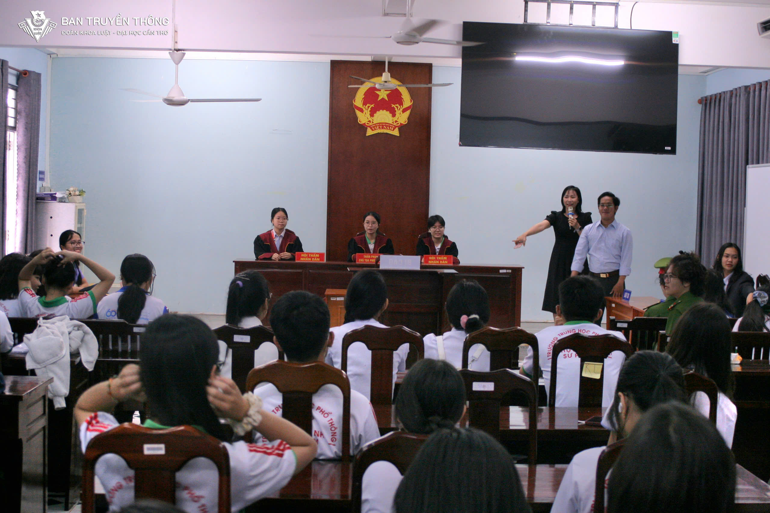 In addition to admissions counseling activities, students also participated in a “Mock Trial” program organized by the Faculty of Law, Can Tho University. This engaging experiential activity vividly simulated courtroom procedures. By observing and interacting during the trial, students not only gained a better understanding of legal regulations but also enhanced their awareness of law compliance and developed critical thinking skills.