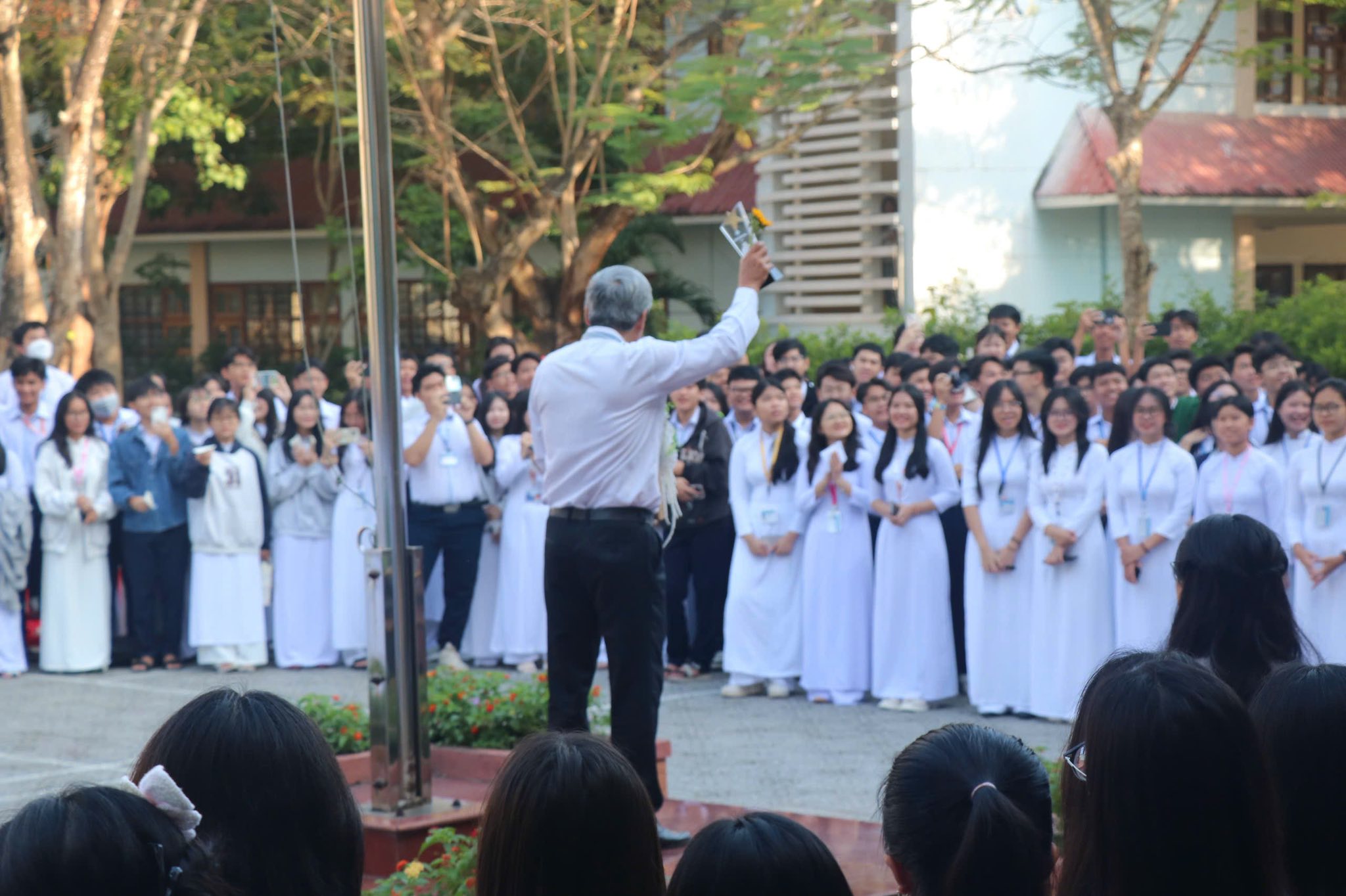 Ngày đầu tiên bước chân vào THPT Thực hành Sư phạm, chúng em còn vụng về và bỡ ngỡ. Vậy mà chỉ trong một thời gian ngắn, ngôi trường ấy đã trở thành nhà, thành thanh xuân – và thầy đã trở thành một phần không thể thiếu trong những tháng ngày đẹp đẽ ấy. Mỗi bài phát biểu của thầy đều chạm đến trái tim chúng em, dạy chúng em biết trân trọng những giá trị tốt đẹp và cách sống tử tế giữa cuộc đời.